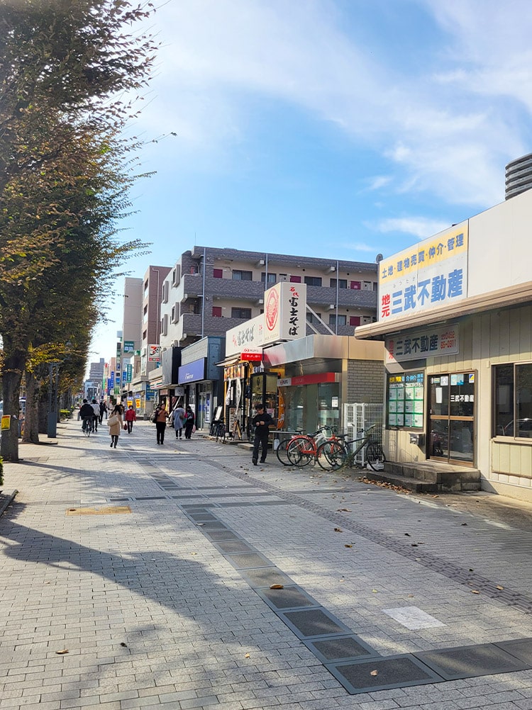 駅から少し歩けば、木々の緑が顔をのぞかせ、日常の買い物も、ふらりと立ち寄れる安心感があります。
