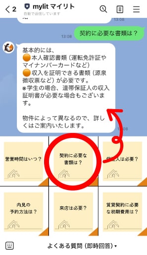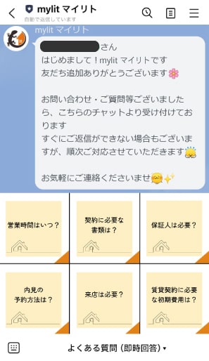 ②友だち追加後は、さっそく物件のご相談やお問い合わせを送る事が可能です。